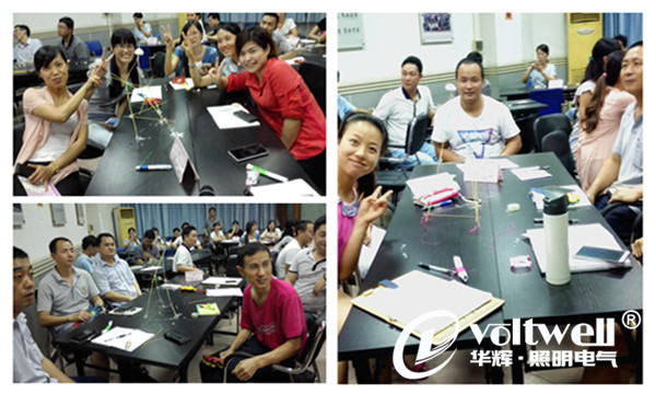 各位家人激情高漲,為了提高各隊(duì)的團(tuán)隊(duì)合作、動(dòng)手能力,主持人特意安排了課前小游戲,根據(jù)統(tǒng)一提供的材料(15根意大利面、透明膠、線)搭起一個(gè)“智慧塔”,并且能把棉花糖放在頂端15分鐘屹立不倒。華輝家人集思廣益,人人動(dòng)手,你扎線,我搭建,每個(gè)隊(duì)齊心協(xié)力,爭(zhēng)創(chuàng)第一。經(jīng)過(guò)20分鐘的戰(zhàn)斗,最終龍馬隊(duì)、雄鷹隊(duì)、飛鷹隊(duì),取得最終的勝利!