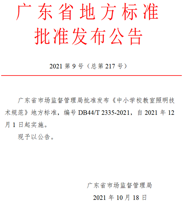 《中小學校教室照明技術規(guī)范》該標準于2021年12月1日起正式實施。發(fā)布會還透露:2023年廣東省將全面完成中小學校教室照明達標任務。