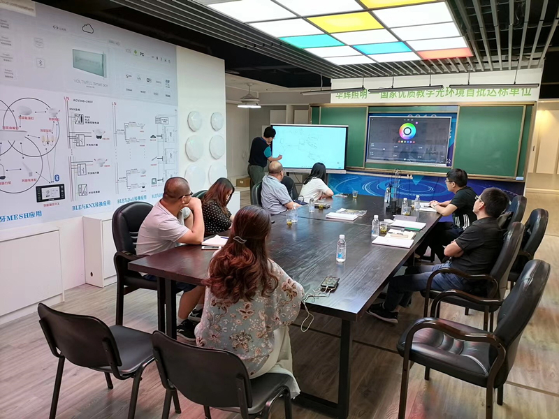 接著,分別介紹了智能調(diào)光調(diào)色控制、華輝AIoT智慧教育照明、智能窗簾、智能控制場(chǎng)景開(kāi)關(guān)、護(hù)眼教育照明燈具等公司明星產(chǎn)品,為大家展示智能教室一鍵切換教室場(chǎng)景模式,現(xiàn)場(chǎng)氣氛一度高漲。