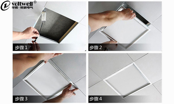 一、嵌入式安裝:這是最常見(jiàn)的一種安裝方式。首先拿去一塊天花板,把LED面板燈的驅(qū)動(dòng)放到旁邊的天花板,連接上電源線,然后放上面板燈就可以了。