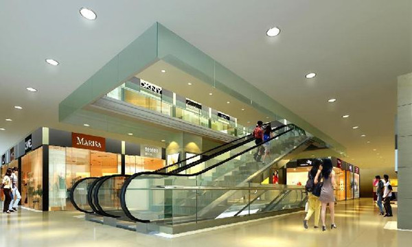 電梯扶手兩側(cè)適當(dāng)?shù)臒艄饪梢砸龑?dǎo)客戶行走,可采用暗藏led熒光燈對(duì)扶手垂直面玻璃照明,給人安全感,并起到裝飾的作用。在電梯扶手樓梯底部嵌裝led天花燈,對(duì)下一層樓梯進(jìn)行基礎(chǔ)照明。在電梯與電梯之間的轉(zhuǎn)折空間,是顧客流動(dòng)量相對(duì)大的地方,也是展示本樓層商品信息的區(qū)域,可以采用亮度較高的金鹵筒燈及格柵射燈進(jìn)行重點(diǎn)照明。