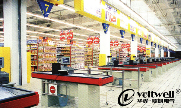 在超市里,光的作用是吸引客戶,顧客的注意力更加容易被光效氣氛好的區(qū)域所吸引。精心設(shè)計的照明可以為顧客創(chuàng)造一種舒適愉悅的氣氛,從而使顧客產(chǎn)生極為舒適的心情。貨物區(qū)有效的照明主要是使客戶感到舒適從而愿意繼續(xù)光臨。獨到新穎的燈具設(shè)計更加突出了內(nèi)部的設(shè)計,同時也加深了整體照明印象。