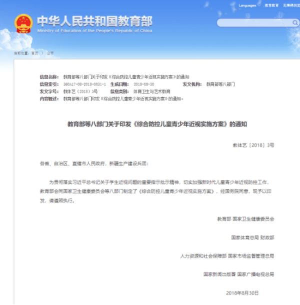教育局等聯(lián)合頒布《關(guān)于加強(qiáng)兒童青少年近視防控工作的指導(dǎo)意見(jiàn)》要求:學(xué)校需嚴(yán)格按照普通中小學(xué)校、中等職業(yè)學(xué)校建設(shè)標(biāo)準(zhǔn),落實(shí)教室、圖書(shū)館(閱覽室)等采光和照明要求,要求教室照明衛(wèi)生標(biāo)準(zhǔn)達(dá)標(biāo)率達(dá)100%。