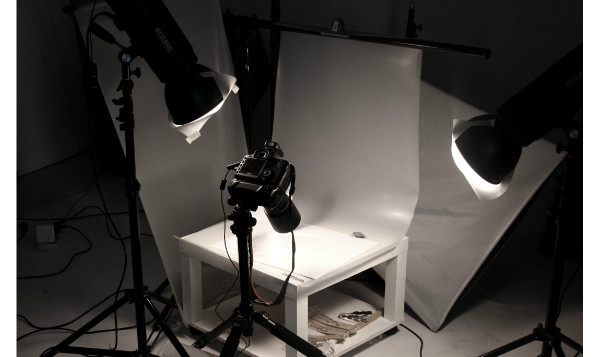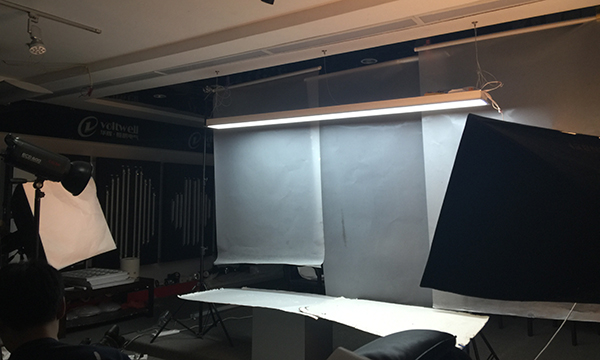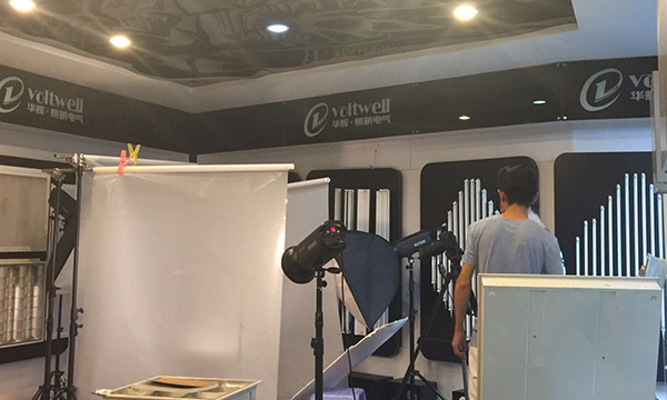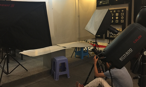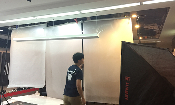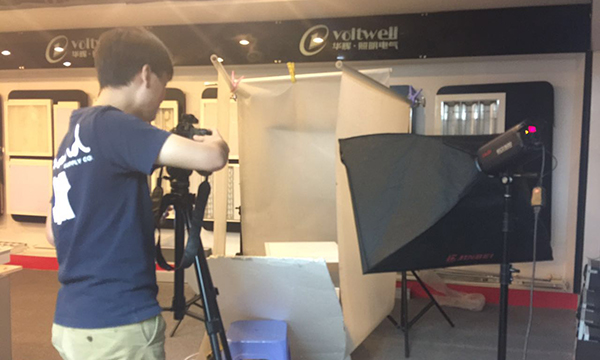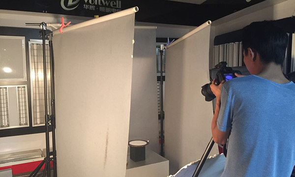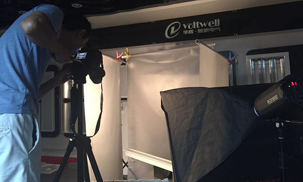 攝影公司直接把攝影棚搬到了華達公司的展廳里。