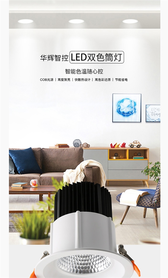 華輝照明COB雙色LED筒燈詳情頁介紹