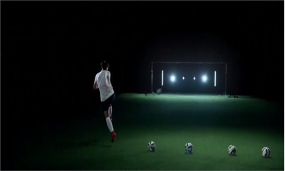 在影片中,Abby Wambach走進了黑暗的足球場,這個足球場只用了不夠亮的白熾燈泡來當足球場的照明,她便踢了幾個球,擊中球門中的幾盞白熾燈泡光源,把它們打滅,然后拿出遙控器,把整座球場的LED照明系統(tǒng)點亮,呈現(xiàn)的效果非常好。
