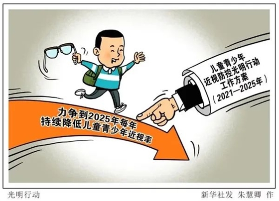 2021年5月份,教育部辦公廳等15部門聯(lián)合印發(fā)《兒童青少年近視防控光明行動工作方案(2021—2025年)》明確了近視防控光明行動工作目標(biāo)。通過合力開展兒童青少年近視防控光明行動,努力克服新冠肺炎疫情影響,健全完善兒童青少年近視防控體系,力爭到2025年每年持續(xù)降低兒童青少年近視率,有效提升兒童青少年視力健康水平,如期實現(xiàn)《綜合防控兒童青少年近視實施方案》2030年各項目標(biāo)任務(wù)。