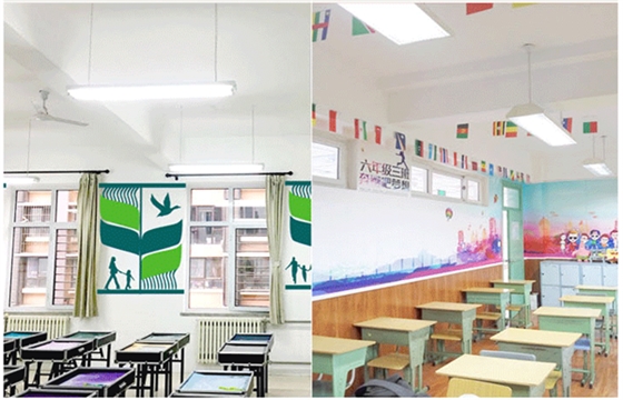 黑板采用3套LED護(hù)眼黑板燈平行于黑板布置,布燈合理照度均勻,不僅顯著改善了教室光環(huán)境,大大提升教室照度均勻度和黑板照度,還兼顧了節(jié)能、舒適和實(shí)用,可謂一舉多得。同時(shí)有效地限制眩光和黑板光幕反射,滿足學(xué)校教室照明標(biāo)準(zhǔn)。