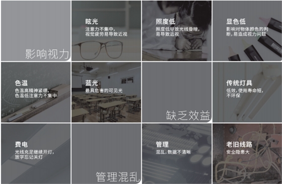 有調(diào)查顯示,我國中小學(xué)生每天約60%的時(shí)間在教室,當(dāng)教室采光和照明條件不足、光線過暗,學(xué)生就會(huì)本能地靠近書本,時(shí)間一久,自然會(huì)使眼睛屈光系統(tǒng)產(chǎn)生變化,導(dǎo)致近視發(fā)生。在國家自然科學(xué)基金項(xiàng)目《基于光生物效應(yīng)的教室健康照明研究》實(shí)驗(yàn)中更科學(xué)地表明:學(xué)校教室照明將直接影響學(xué)生學(xué)習(xí)效率及視力健康。
