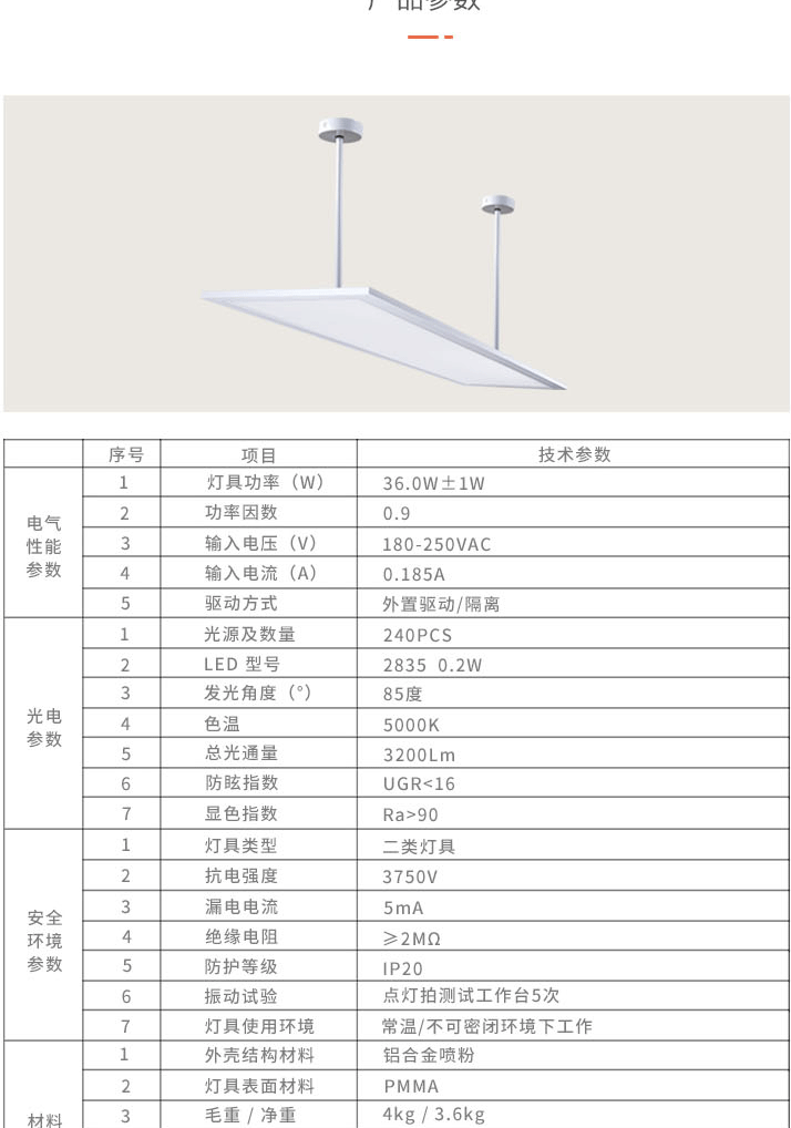 產(chǎn)品名稱 :36W LED 側(cè)發(fā)光教室燈