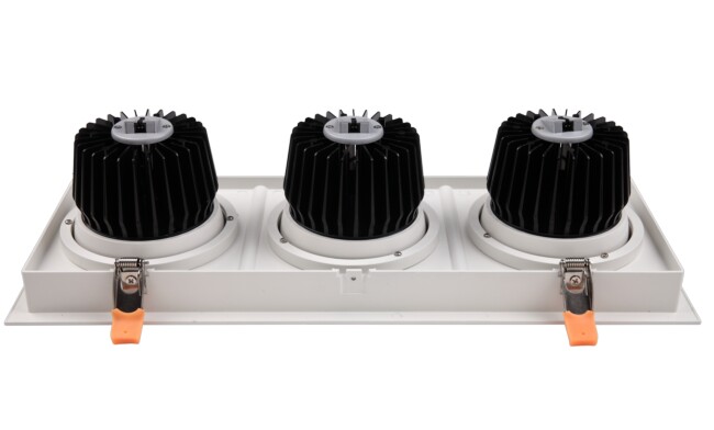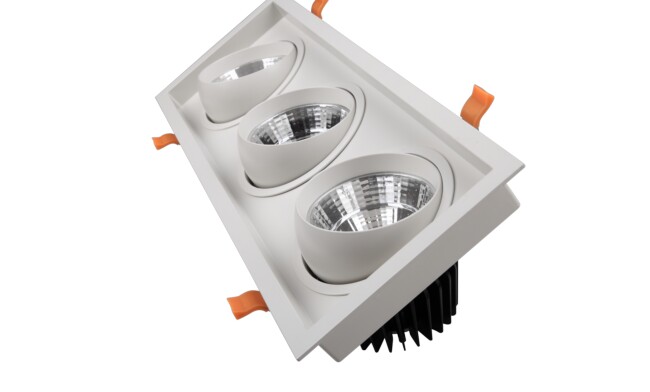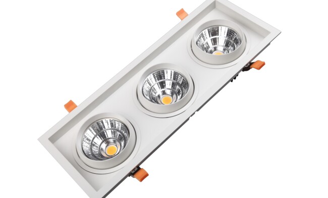 1、G15系列三頭COB格柵射燈燈體采用優(yōu)質(zhì)鋁合金噴涂處理,散熱好,面框為鋁合金沉臺設計,外觀新穎、時尚