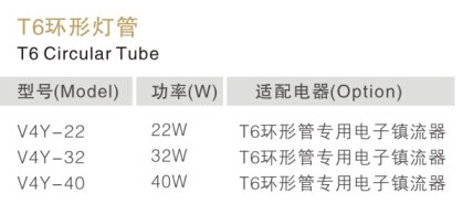 產(chǎn)品名稱:華輝T6環(huán)形燈管